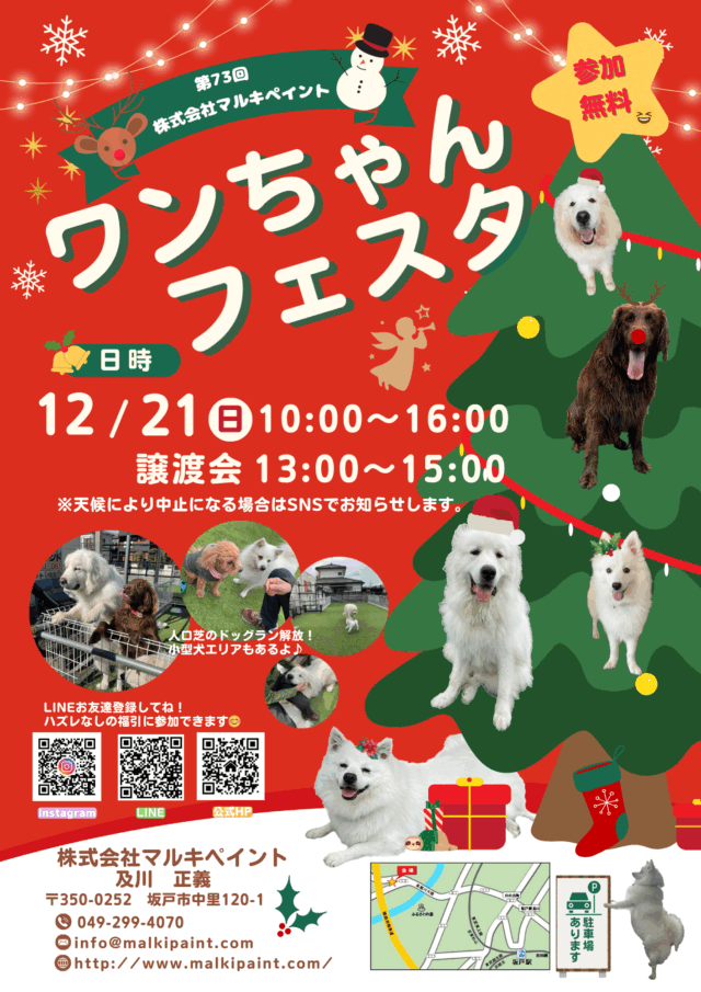 第73回ワンちゃんフェスタを12/21(日)に行います。