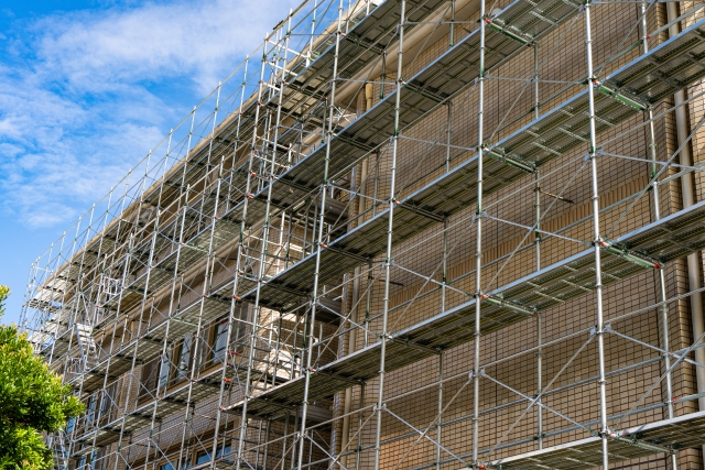 足場の種類(枠組足場、単管足場など)や建物の高さ、敷地条件によって費用は変動します。養生シートも防音・防塵性能によって価格差があるため、近隣環境への配慮が必要な物件では高性能シートの採用を検討する必要があります。