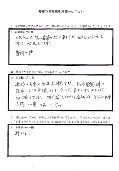 - 当社を知ってから塗り替え工事をご依頼頂くまでに、何かためらったり迷ったりすることはあったでしょうか?また、それはどのようにして解消されましたでしょうか?