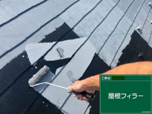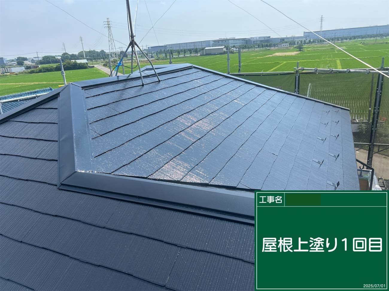 屋根の塗装です。屋根も下塗りを二度行い、下地を強化します。
