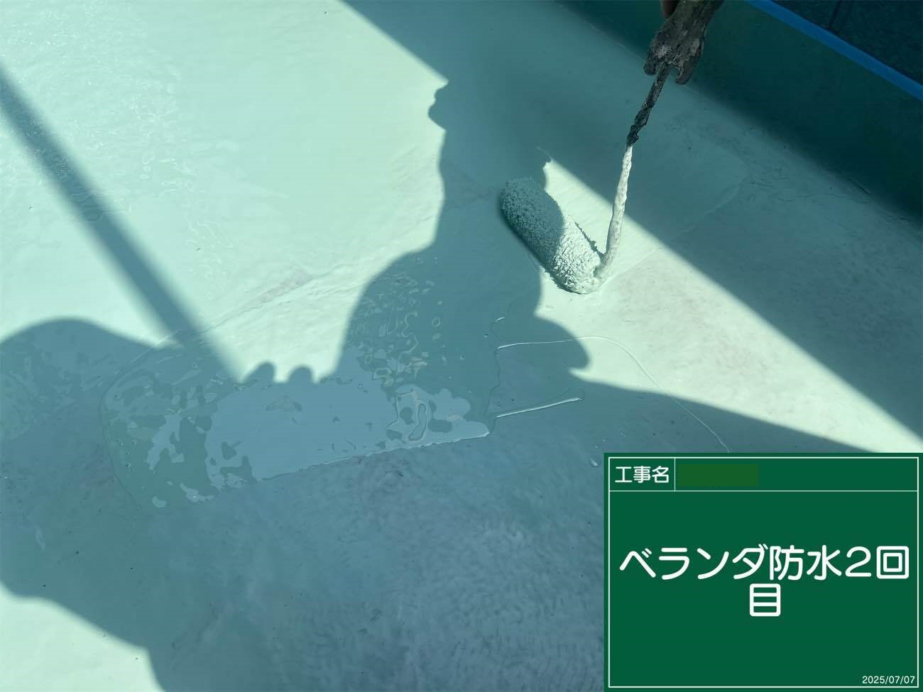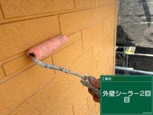1回目は、下地を強化し、古い塗膜と上塗り塗料の密着性を高めることが目的です。2回目は、表面の保護膜になり、防水層となります。どちらも重要な工程です。