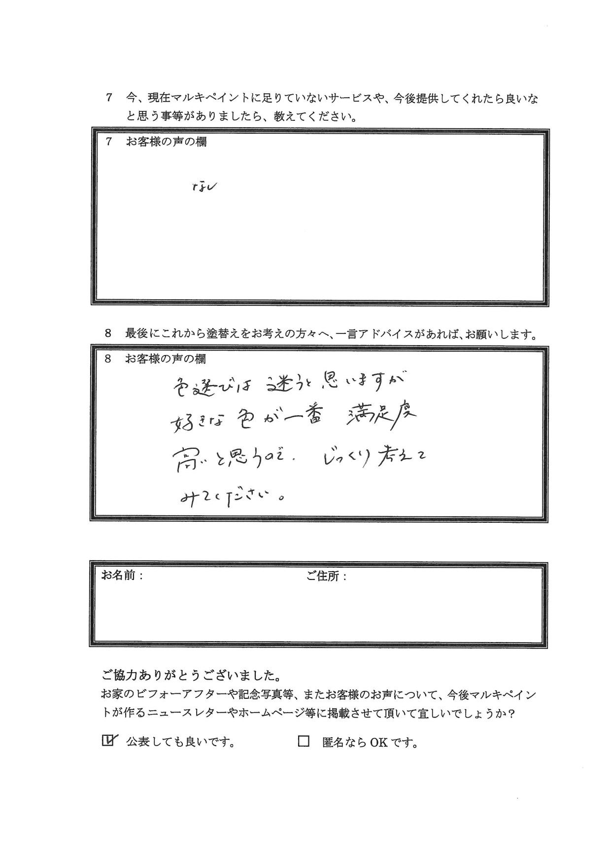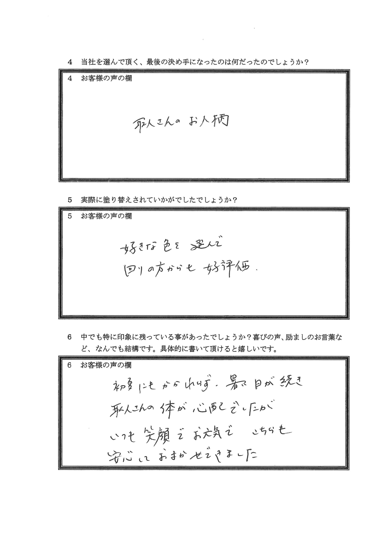 - 最後にこれから塗替えをお考えの方々へ、一言アドバイスがあればお願いします