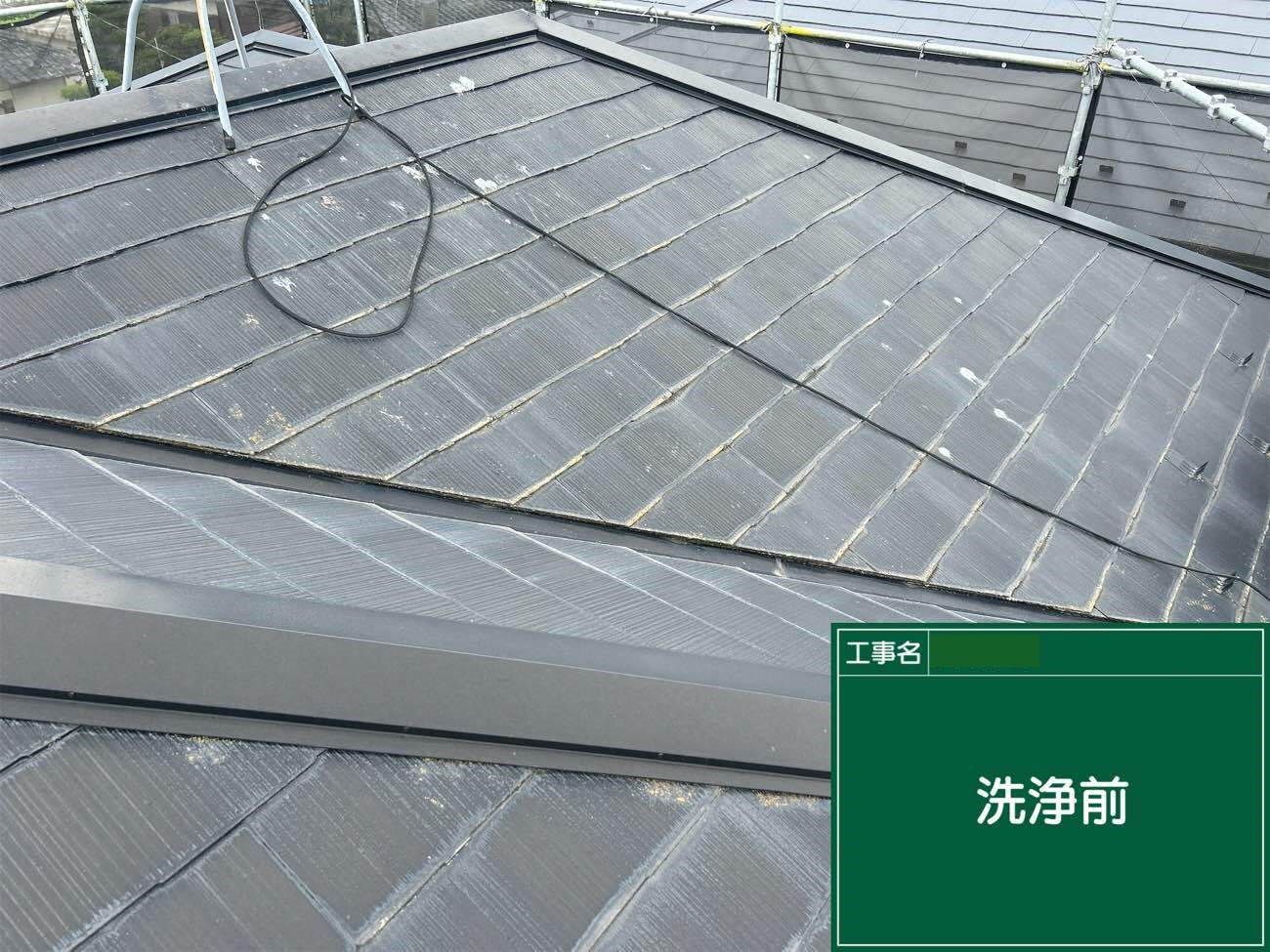 まずは高圧洗浄を行います。150キロもの圧力のあるスクリュー状の水流を噴射して、コケなどをしっかり洗い流していきます。削ぐように古い塗膜やほこりを洗い流すことで、次に塗る塗料の性能を十二分に発揮させることも狙いです。