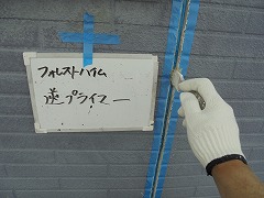 下塗り2回目はSBフィラーです。微弾性なのでクラックへの追従性にすぐれており、ヒビ割れに強い外壁を形成します。また、吸い込みの少ない塗膜のため、上塗りが美しく仕上がります。
