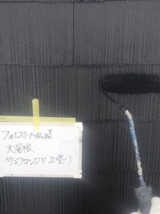 中塗り・上塗りには、屋根と同じくサンフロンUVを使用しました。