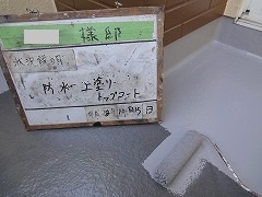 N様邸のベランダは防水層がしっかりしている状態でしたので、トップコートのみ塗替えを行いました。その場合ももちろん、下塗りにきちんとプライマーを入れて密着性を高めます。