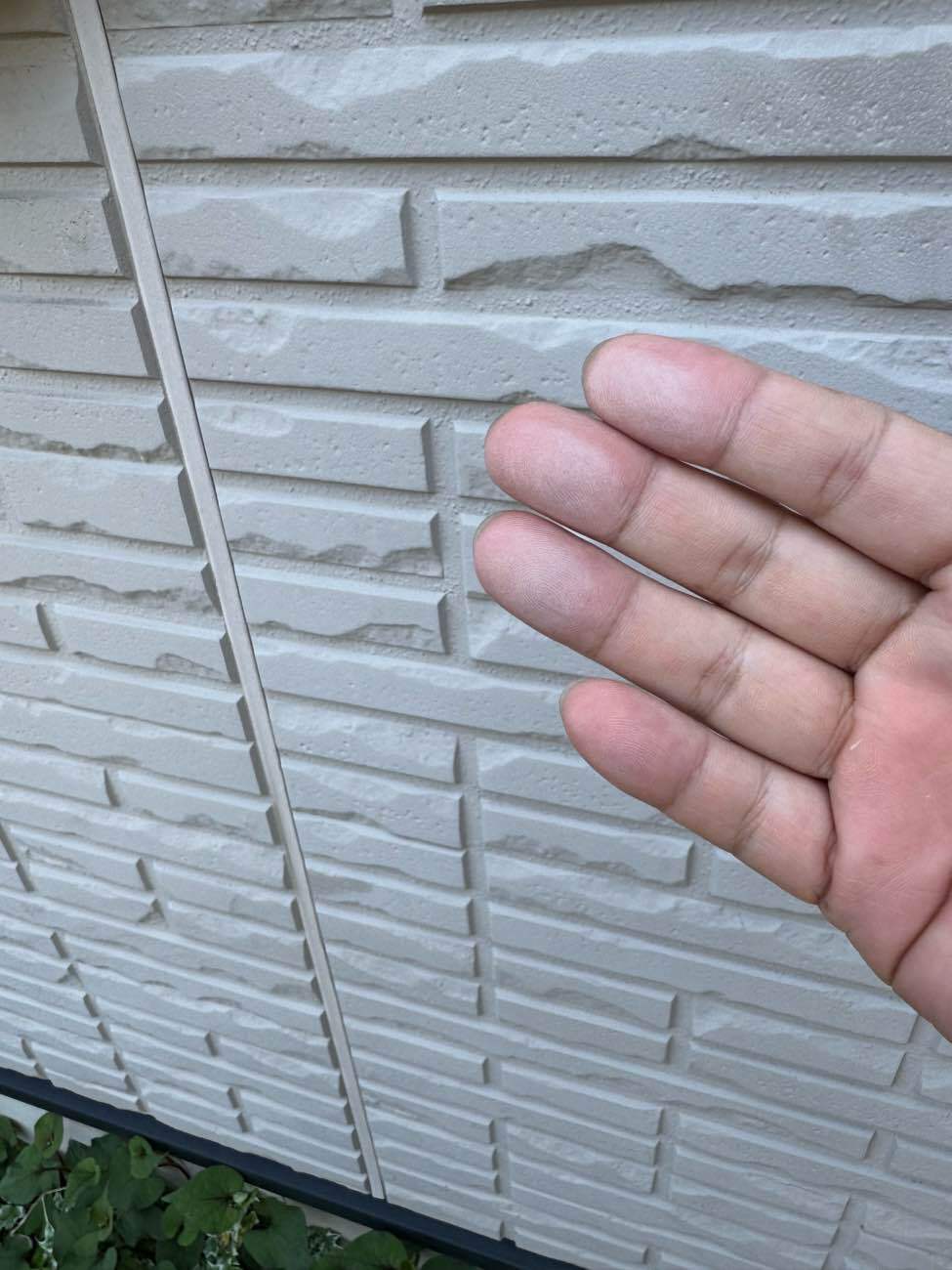 現場調査をすると、外壁にチョーキング(外壁に触れることで手のひらに白い粉がつくこと)が見られました。チョーキングは塗膜が劣化した状態を示しています。