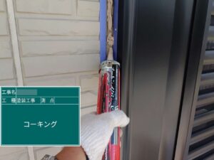 シーリング材は、中に気泡が入らないように専用コーキングガンを使用し、均一にならして仕上がり面を滑らかにしていきます。