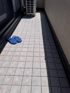 ベランダは歩⾏摩擦での痛みもあり、水はけが悪いこと、紫外線も多く浴びることから、定期的な防水工事を勧めています。