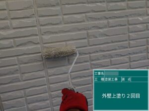当社では中塗り・上塗りと2回塗り重ねることを基本としています。インターバル時間を置いて塗り重ねることで丈夫な2層の塗膜ができ、塗料の性能を最大限に発揮します。