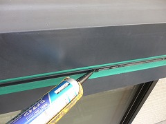 シャッターボックスのつなぎ目部分の補修です。隙間にコーキング材を充填して丁寧に補修しました。