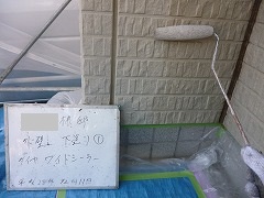 外壁塗装の下塗り1回目は、浸透性のワイドシーラーで下地の強化と上塗りの密着性を高めます。
