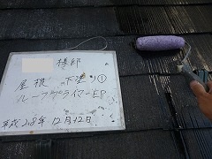劣化して弱った瓦は少しの力が加わっただけで割れてしまう恐れがあります。浸透性のルーフプライマーEPをたっぷり2回塗って浸透させ、固化することで脆弱な下地が強化されます。