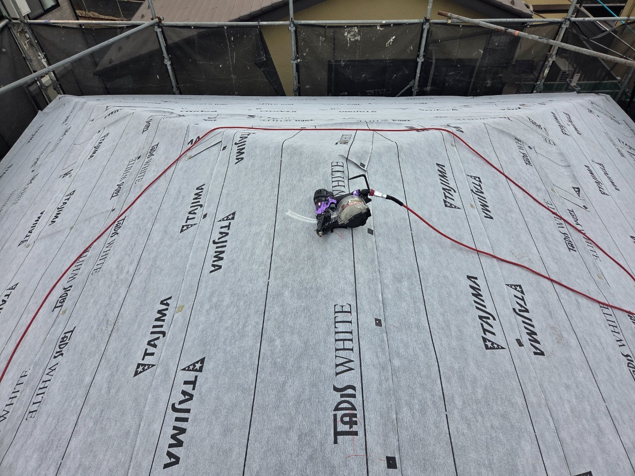 屋根はシルキーG2を使用したカバー工法にて施工いたしました。既存の屋根材を撤去せず、その上から新しい屋根材を施工することで、廃材を抑えながら効率的にリフォームを行っています。