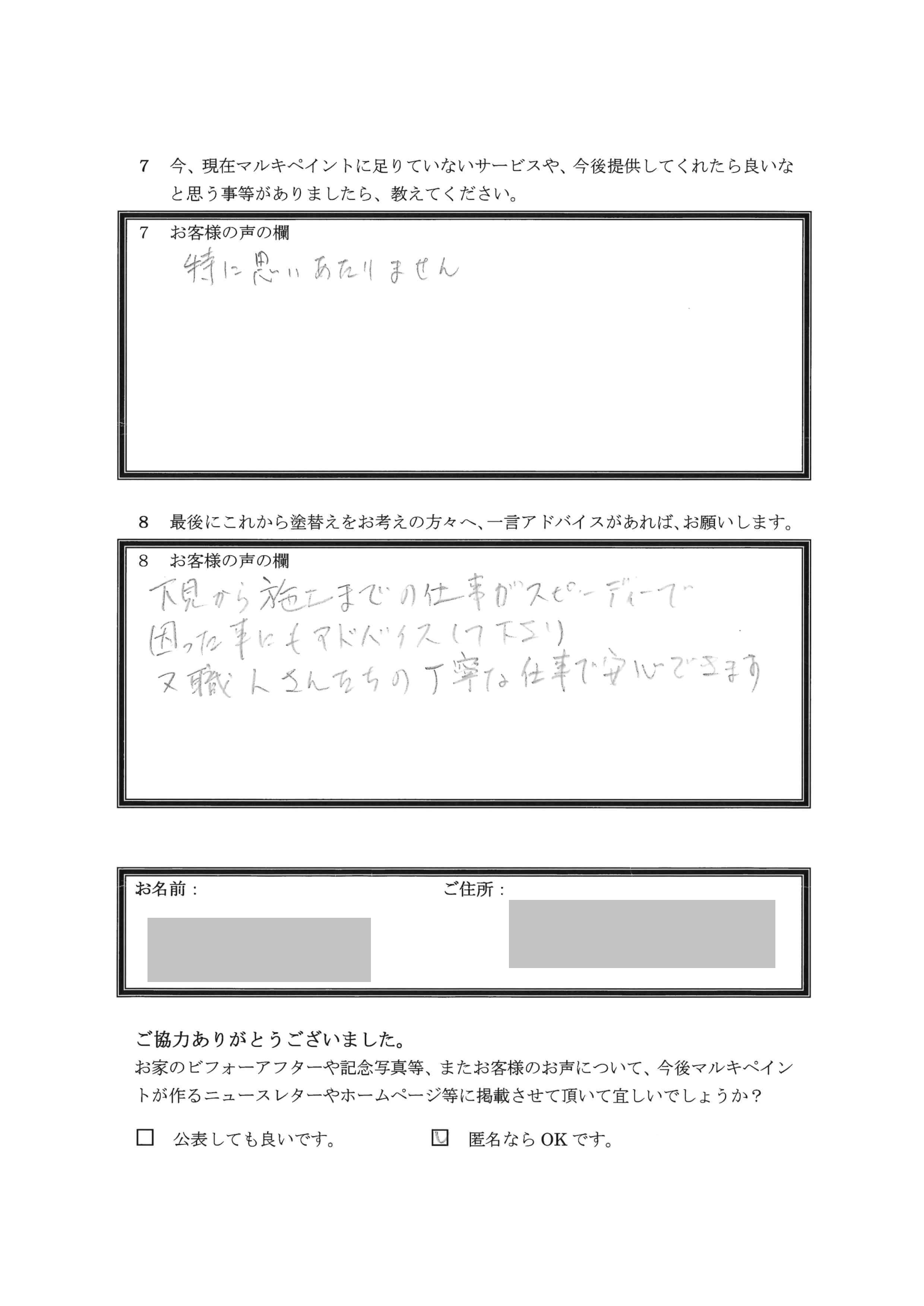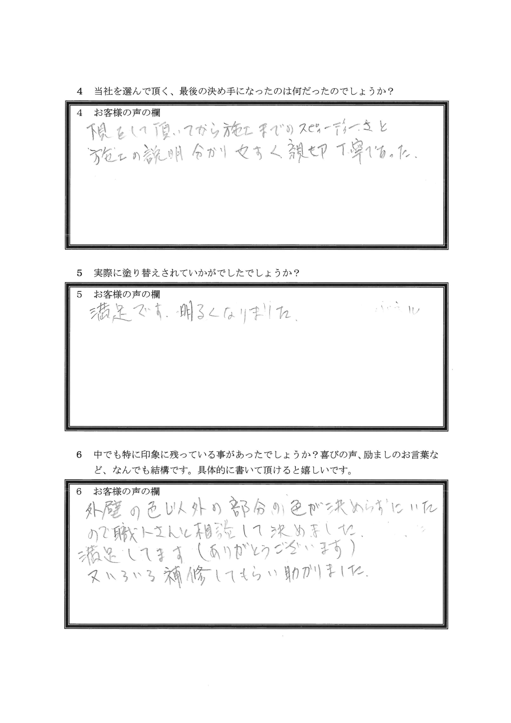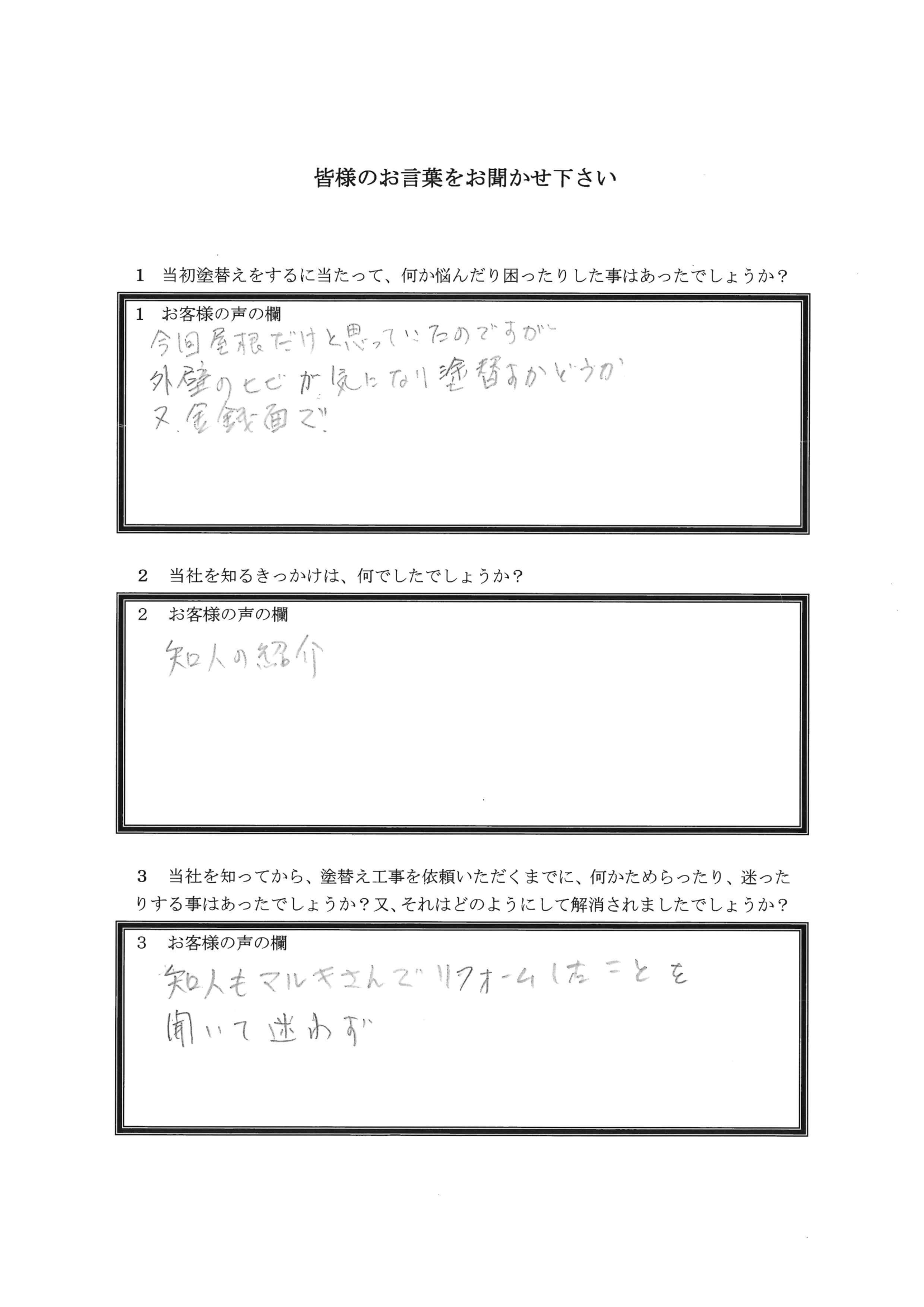 埼玉県鶴ヶ島市K様アンケート